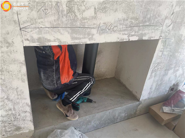 項目介紹:業主家別墅有現成磚石煙道,所以選擇嵌入式壁爐安裝!壁爐煙囪選擇單層管,直接從磚石煙道中豎直安裝,穿出磚石煙道口,不僅煙囪成本低,也更加美觀!