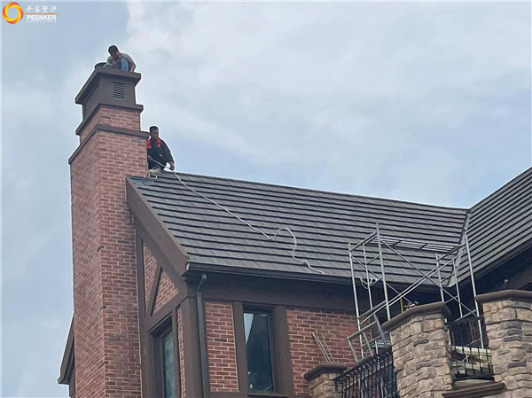 項目介紹:紫金7號別墅有現成的磚石爐膛和磚石煙囪,所以選擇丹麥Morso S80-90嵌入式壁爐安裝,單層不銹鋼煙囪從磚石煙道中穿出!平客項目部帶隊上門安裝!