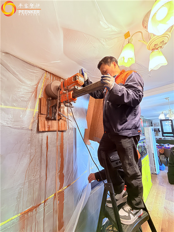 項目情況:應業(yè)主要求,對項目所在城市和名稱進行保密,所以這里不便做過多說明。別墅已裝修,煙囪穿側(cè)墻出戶外,由平客壁爐項目部帶隊上門安裝。