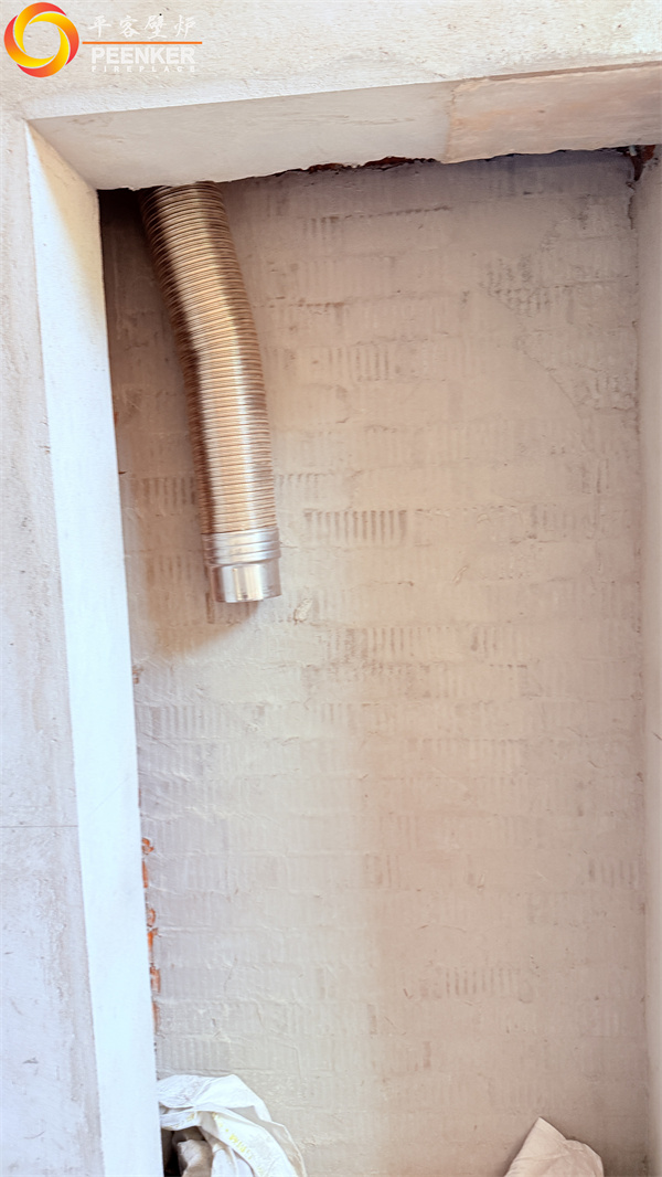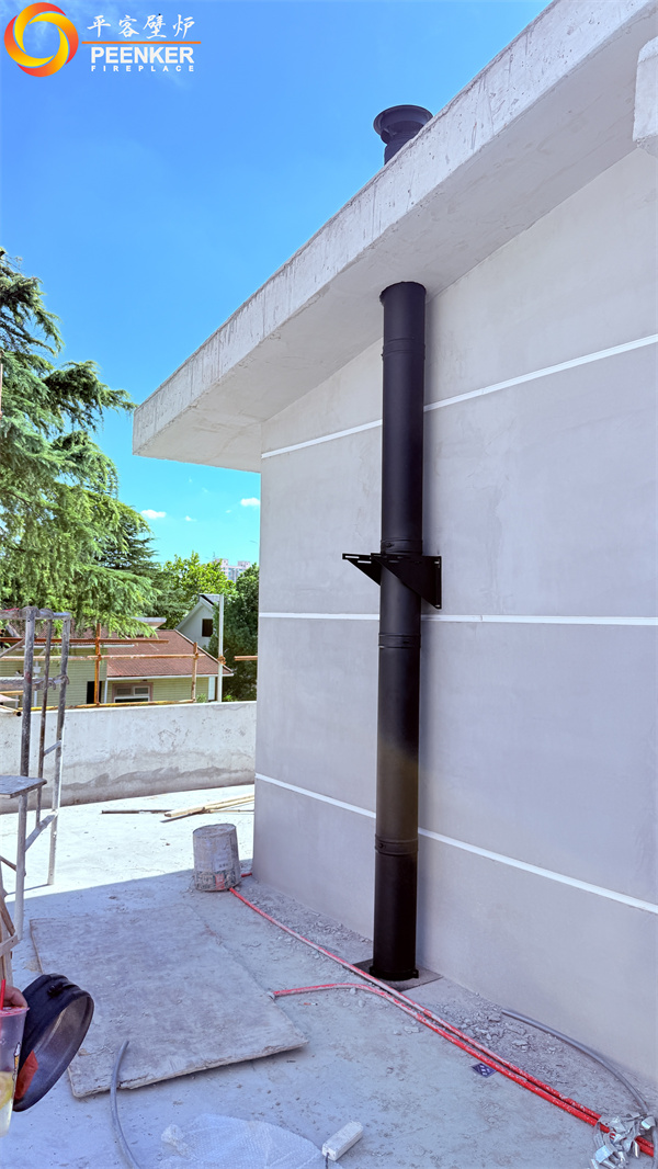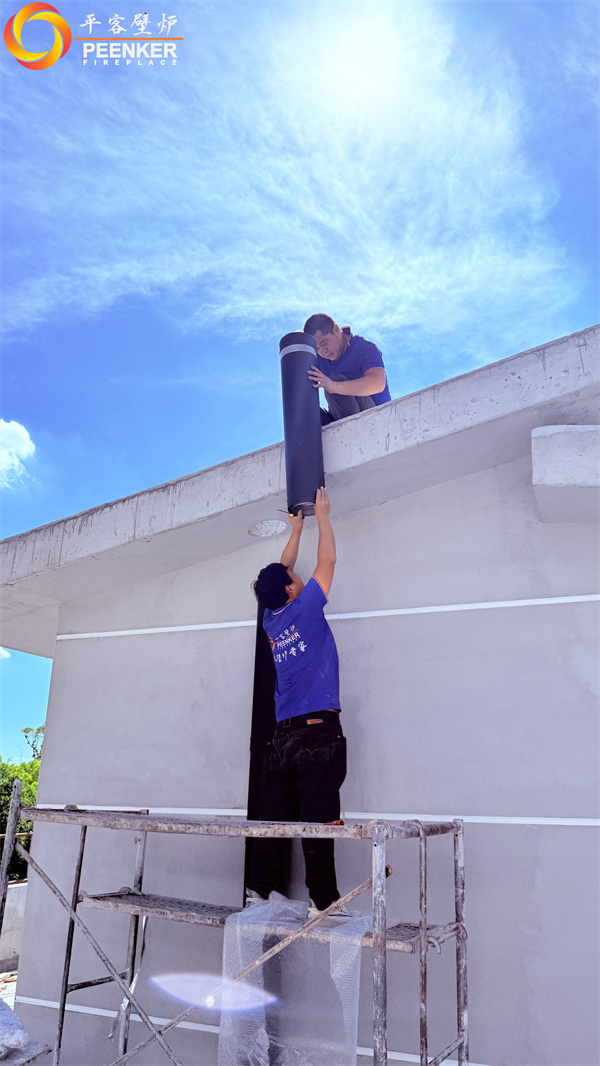 項目情況:該項目為獨棟別墅,3層建筑,煙囪穿一二層樓板出戶外,由平客壁爐項目部帶隊上門安裝。