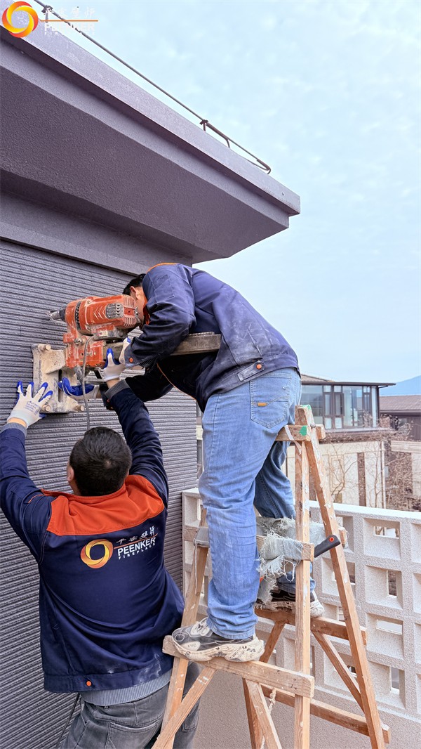 項目情況:該項目位于宜興陽羨美廬小區(qū),壁爐安裝在頂樓,煙囪穿側墻到戶外,應業(yè)主要求,使用壁爐風機代替煙囪解決抽力問題,由平客項目部帶隊上門安裝。