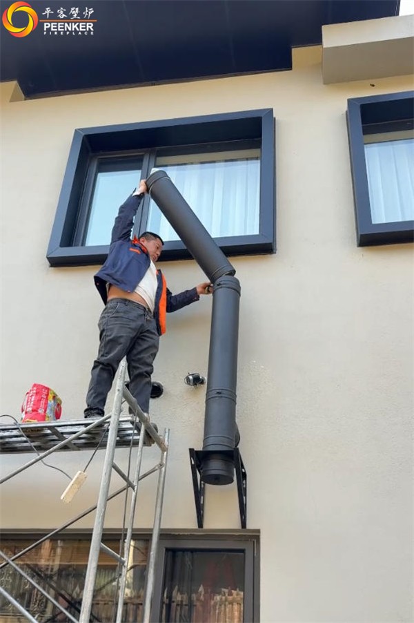 項目情況:該項目位于湖南長沙湘江壹號別墅區,業主復購的第二臺真火壁爐,煙囪穿側墻到戶外。由平客項目部帶隊上門安裝。