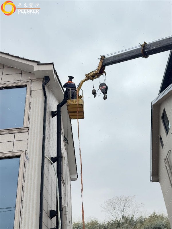 項目情況:該項目位于浙江安吉孝源村,為四層自建別墅,壁爐安裝在客廳,煙囪采用背排安裝,垂直加高過屋檐,由平客項目部帶隊上門安裝。