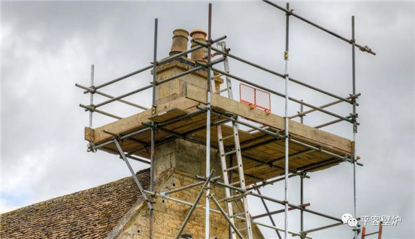 修繕煙囪并不容易,有的煙囪高達十幾米,而且三面甚至四面懸空;還有的建筑物屋頂傾斜角度非常大,無法立足,難以施工。