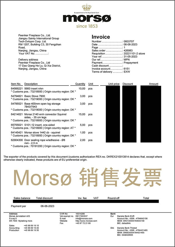 要求商家出具國(guó)外供貨商的銷售發(fā)票和進(jìn)口貨物報(bào)關(guān)單。商家可能會(huì)把跟價(jià)格、數(shù)量有關(guān)的部分涂黑,但不敢改動(dòng)發(fā)票號(hào)碼和報(bào)關(guān)單號(hào),偽造進(jìn)口報(bào)關(guān)單是重罪,一般人不敢以身試法。我把2023年我們從丹麥Mors?公司進(jìn)貨的發(fā)票和報(bào)關(guān)單貼在下方,供大家參考。